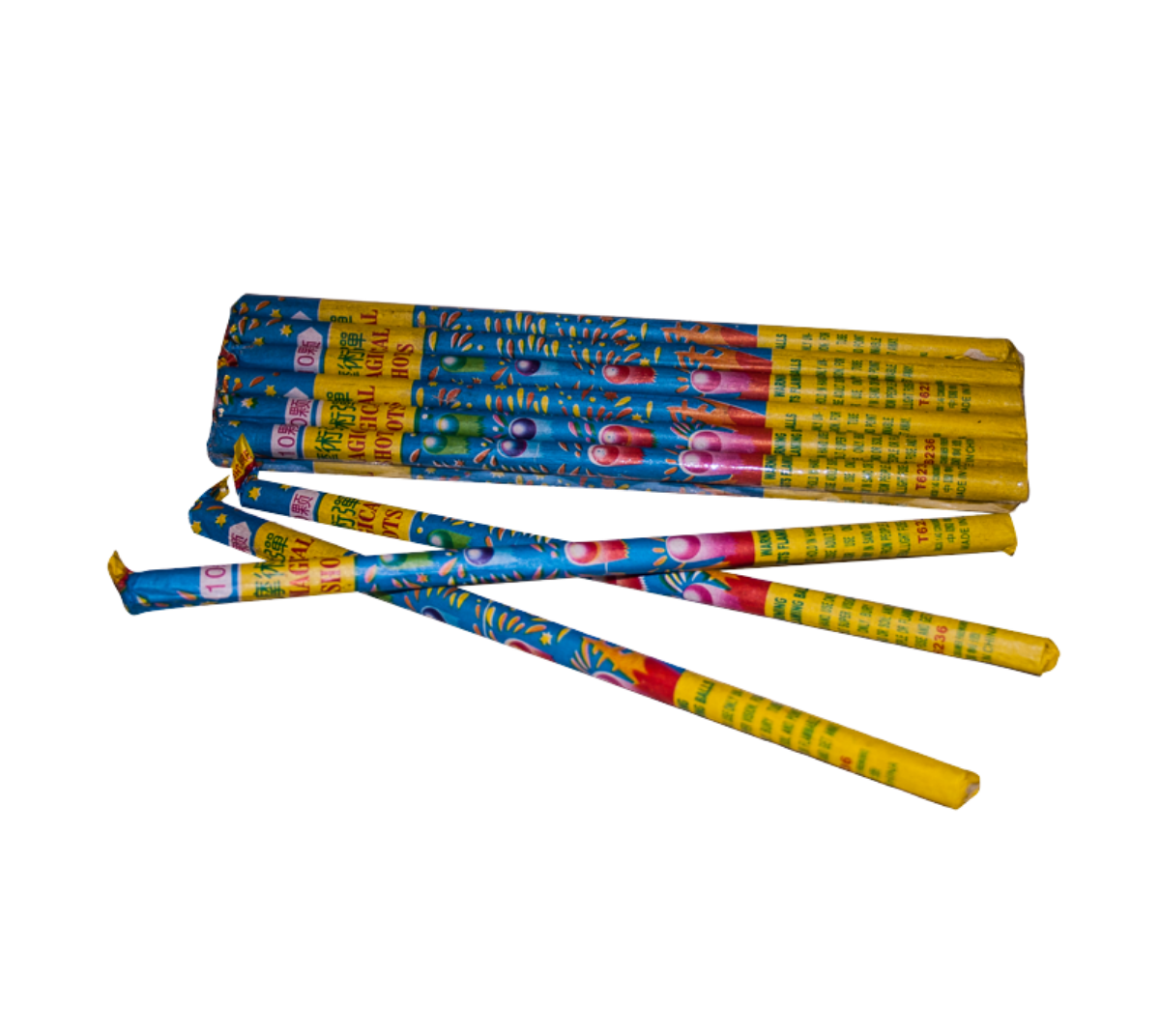 Each candle fires 10 flaming color balls, one at a time. With six candles in the pack, that gives you a total of 60 shots across the full set.