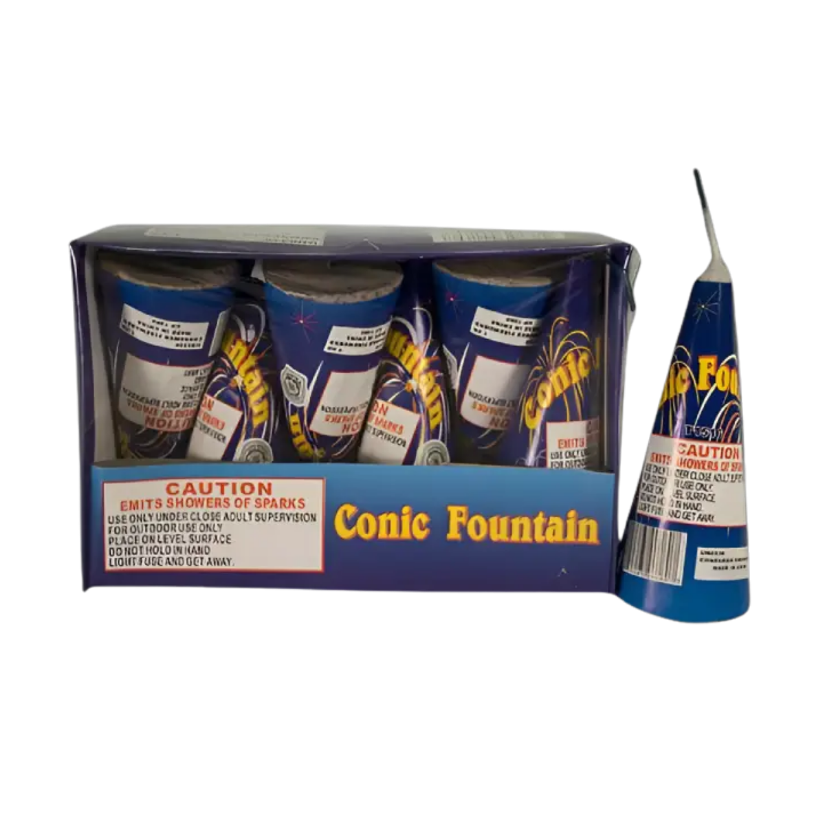 The 4” Conic Fountain Pack includes a set of compact fountains that produce upward sprays of sparks with changing colors. Each cone is made for simple ground use, making it a solid choice for steady effects without using aerial fireworks.